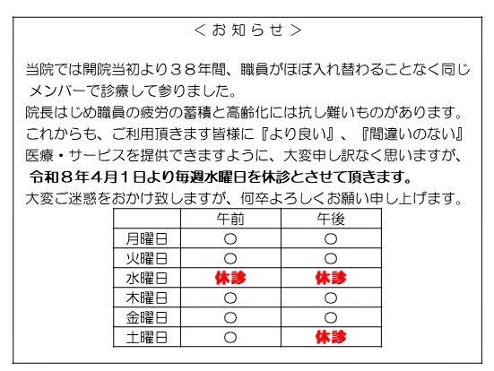 水曜日休診のお知らせ