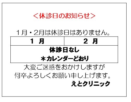 休診日・年末年始のお知らせ